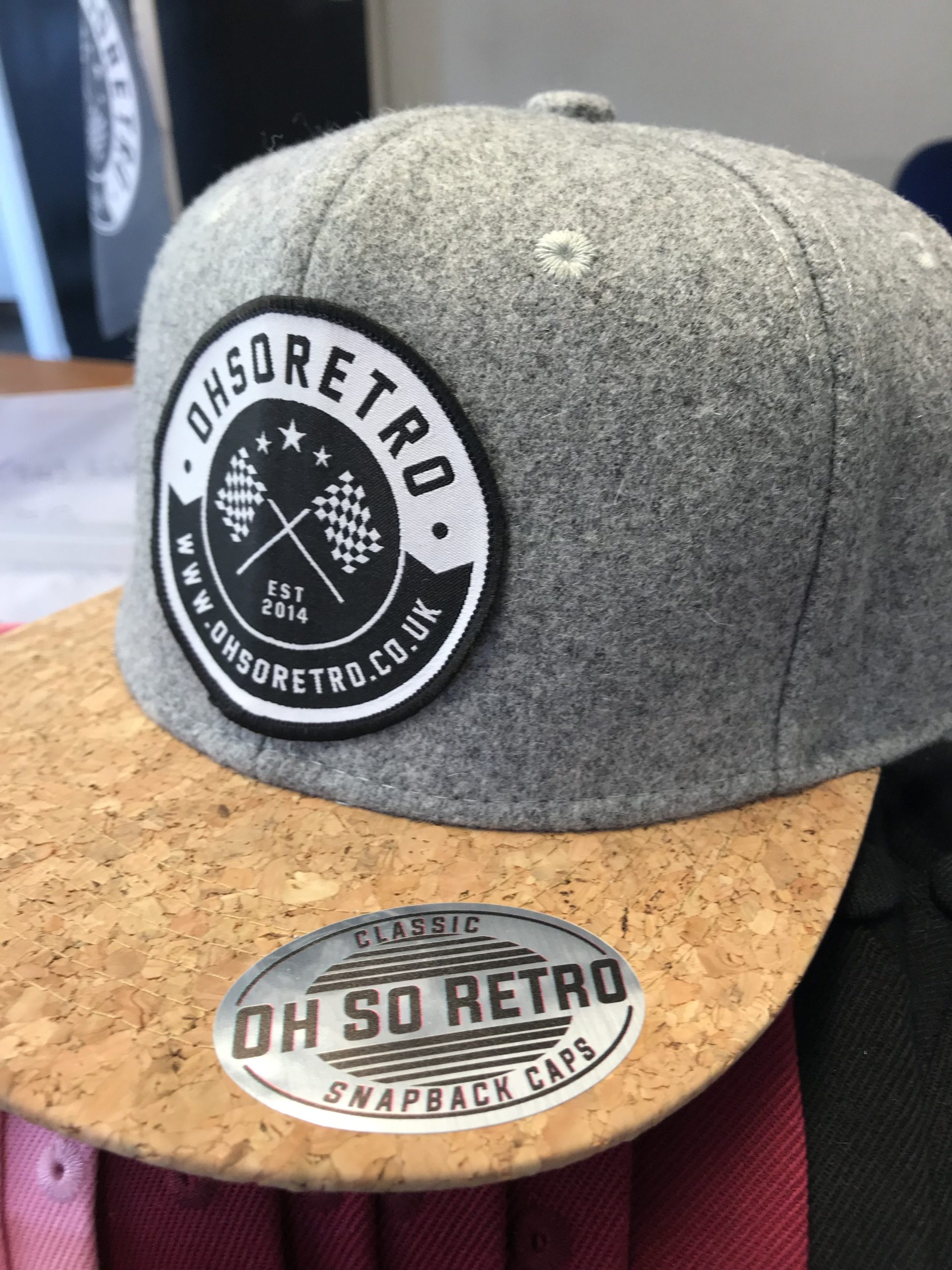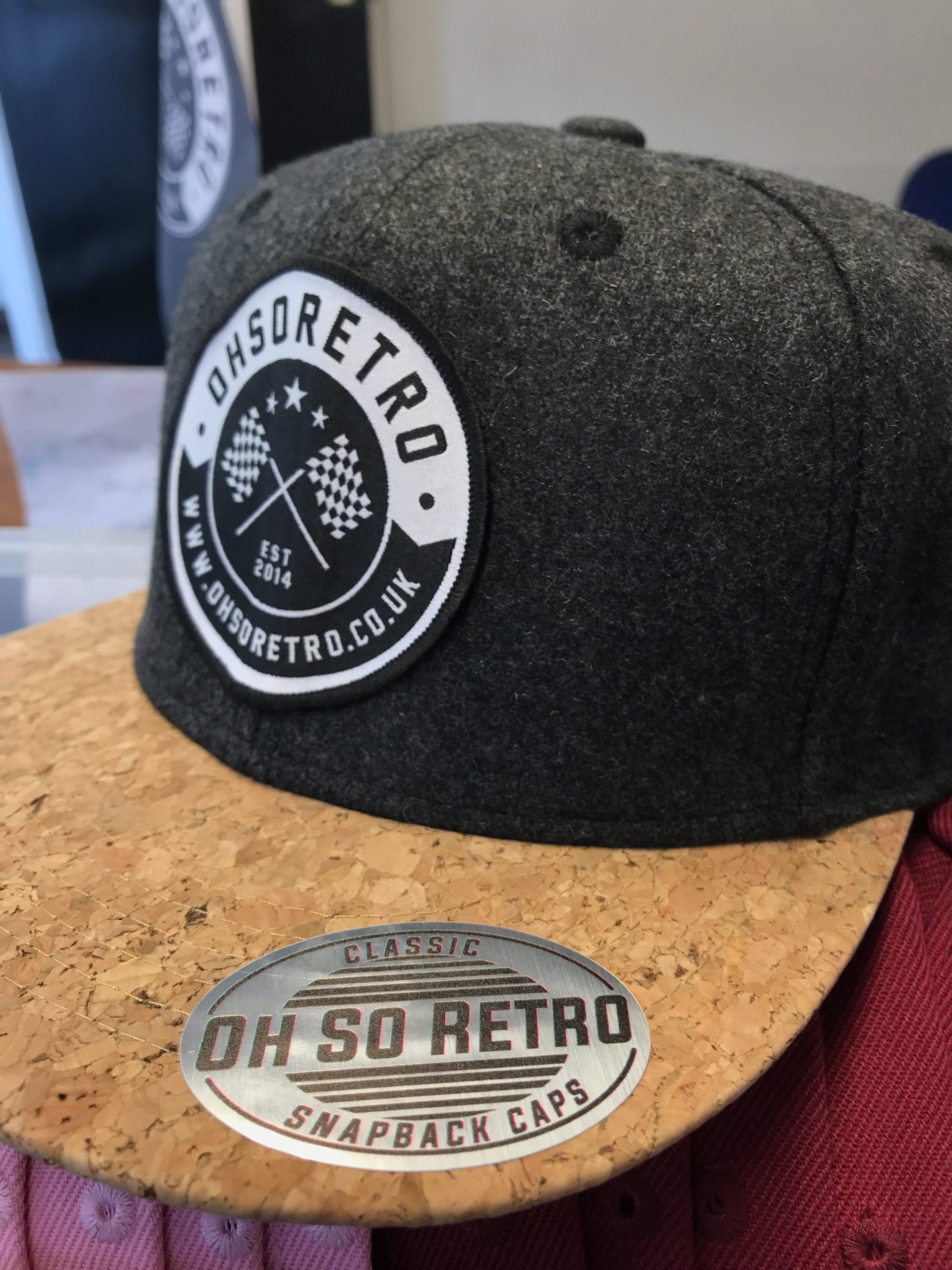 Cork Peaked Snapback available in Light or Dark Grey.